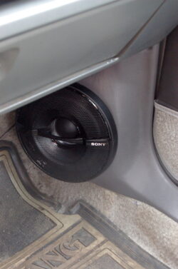 For stellar sound staging, we installed Sony GS silk dome tweeters in the dash. We could have placed the tweeters below the dash cover, but the dash cover would have blocked too much of the sound. Instead, we surface-mounted these tweeters to produce the smoothest, most accurate cymbal sounds.